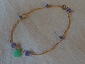 目の覚めるようなグリーンのクリプソプレーズを中心に神秘的な青が美しいタンザナイトが繊細に彩るブレスレット。