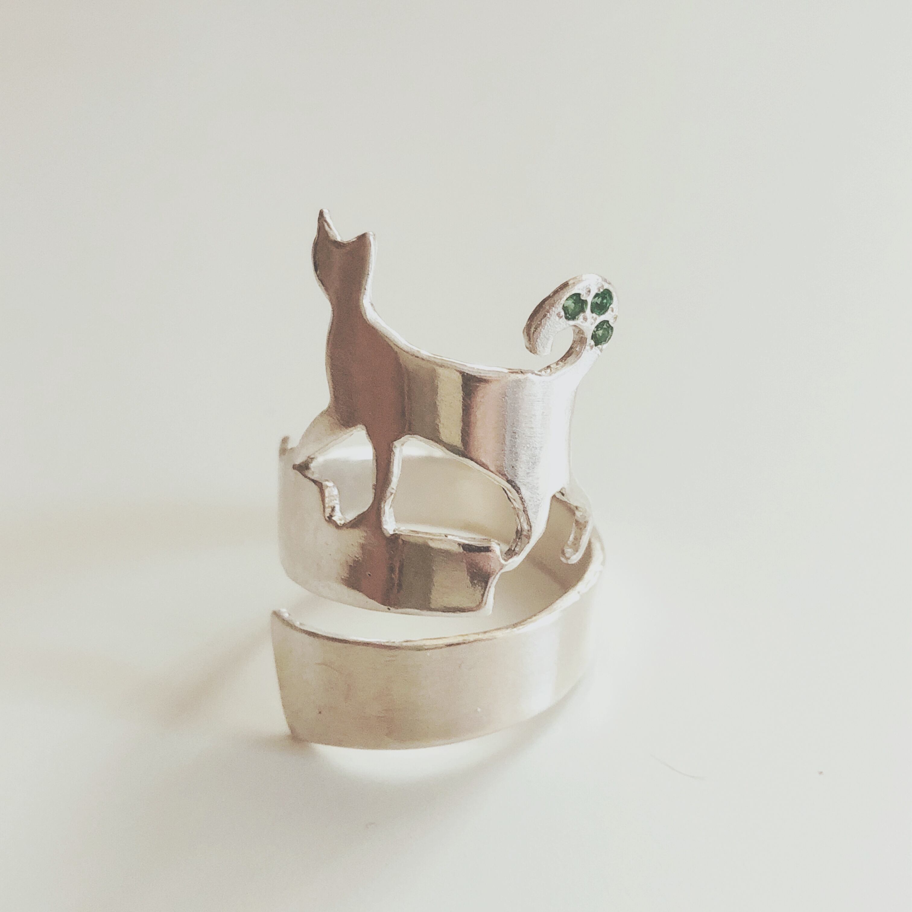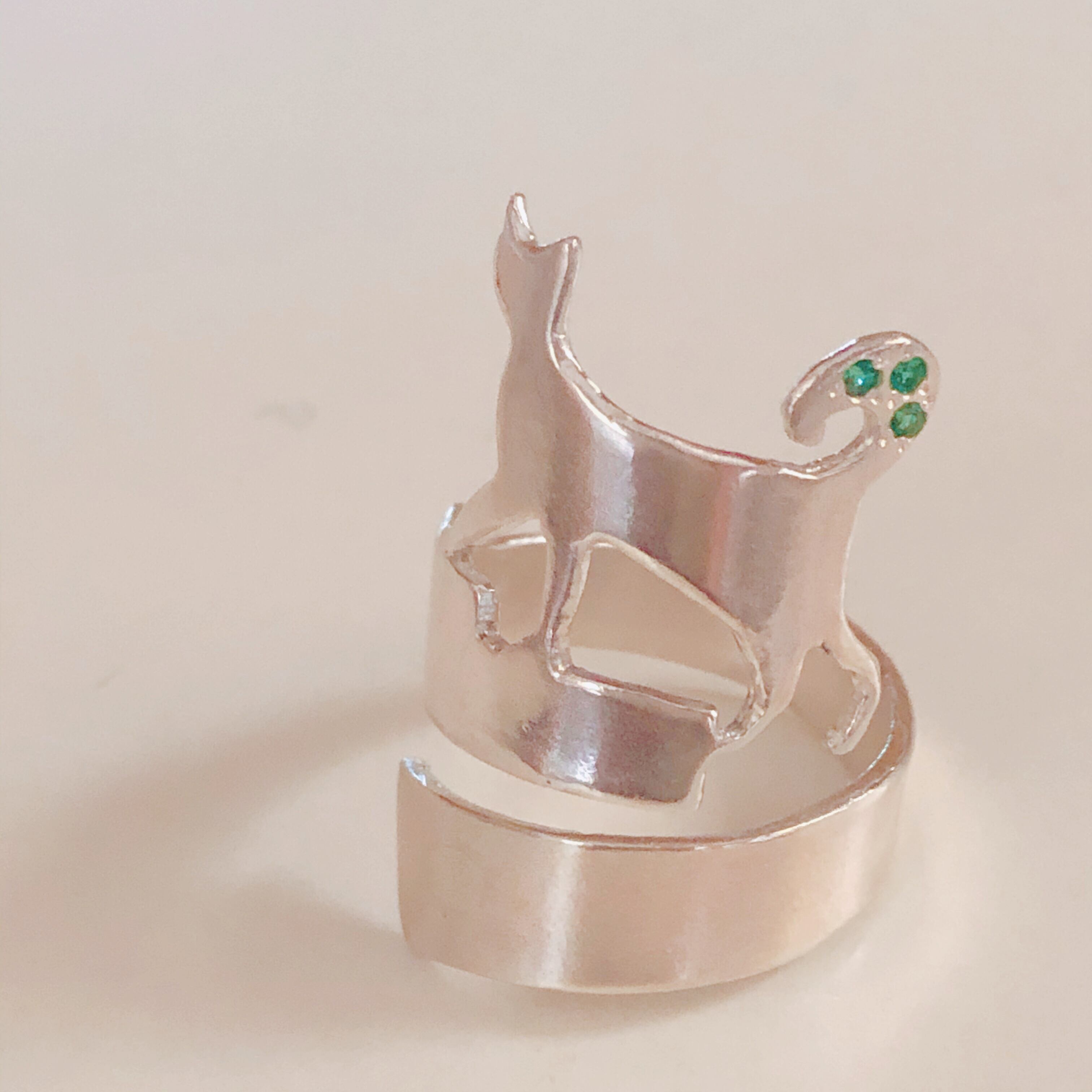 エメラルドを散りばめた、4ねこリングの新バージョンです。