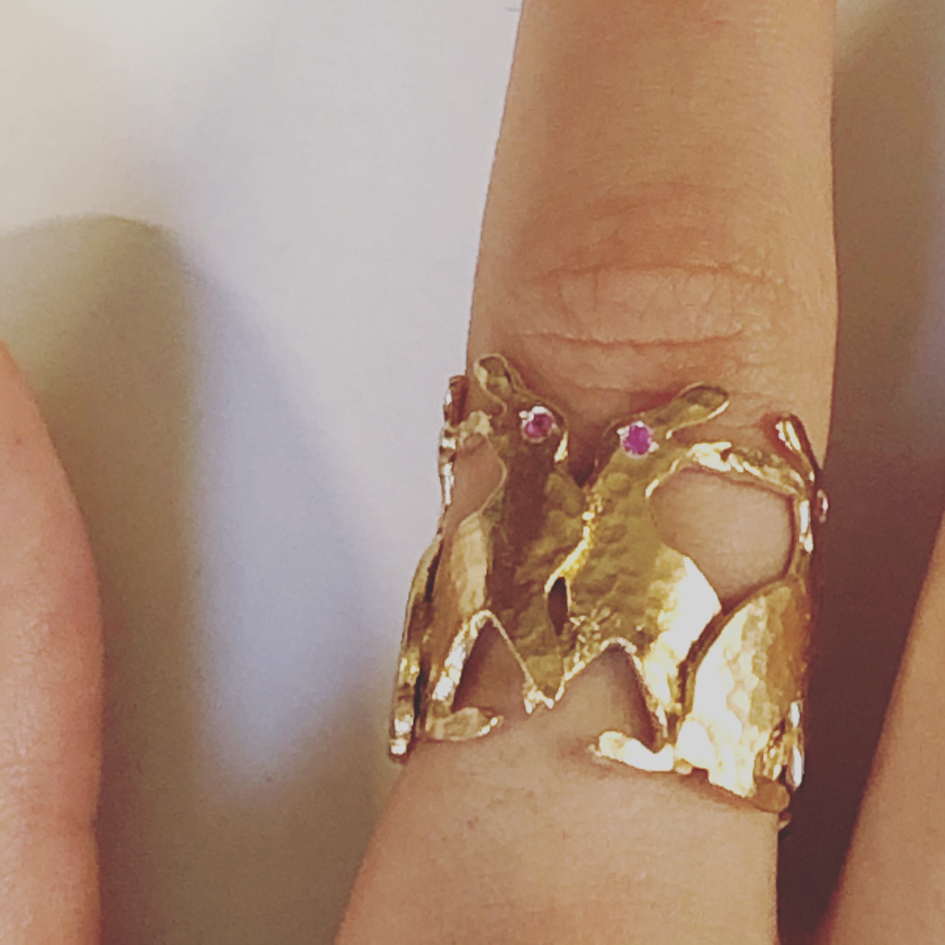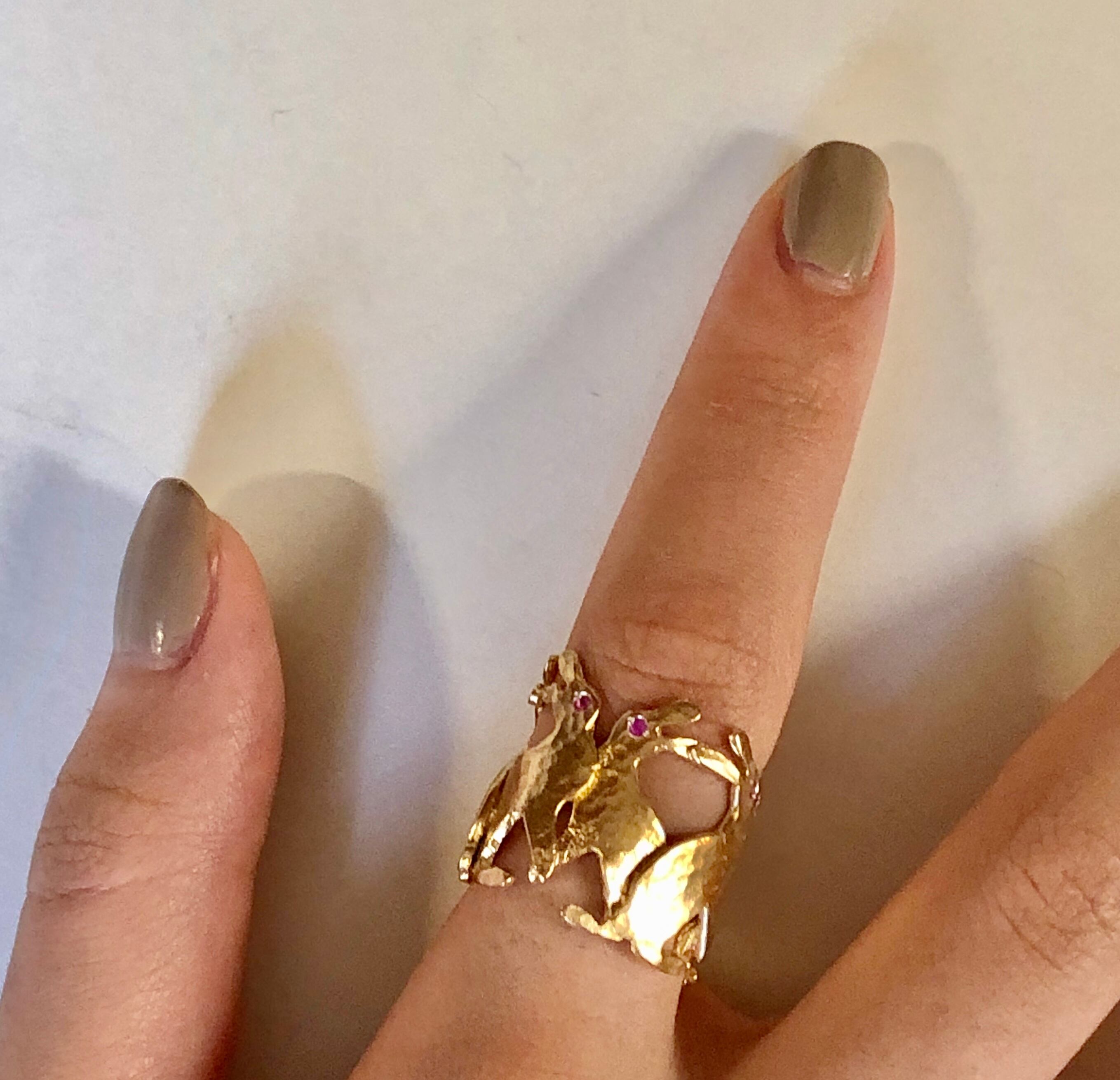 ピンクトルマリンの瞳がアクセントのリングが仲間入りしました。