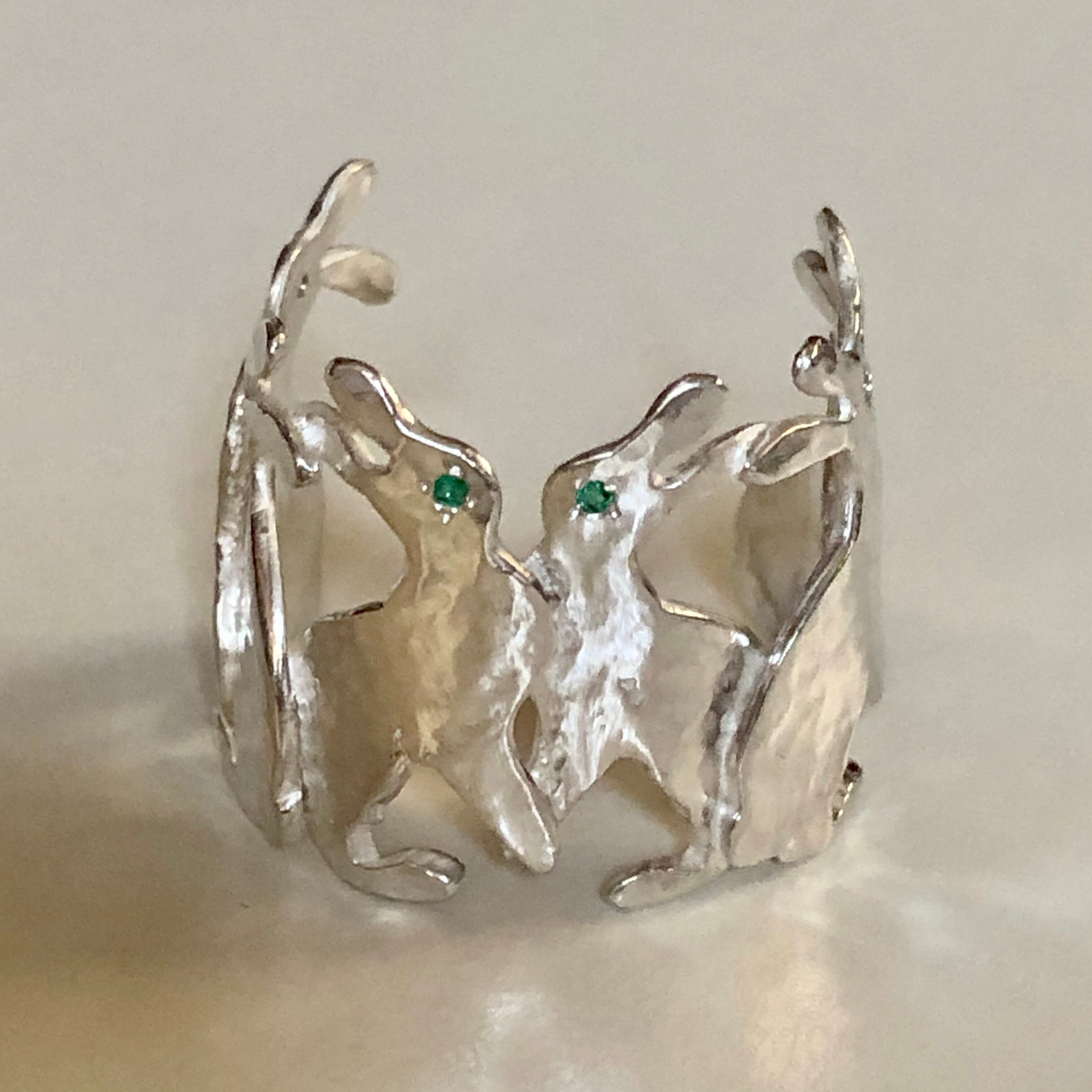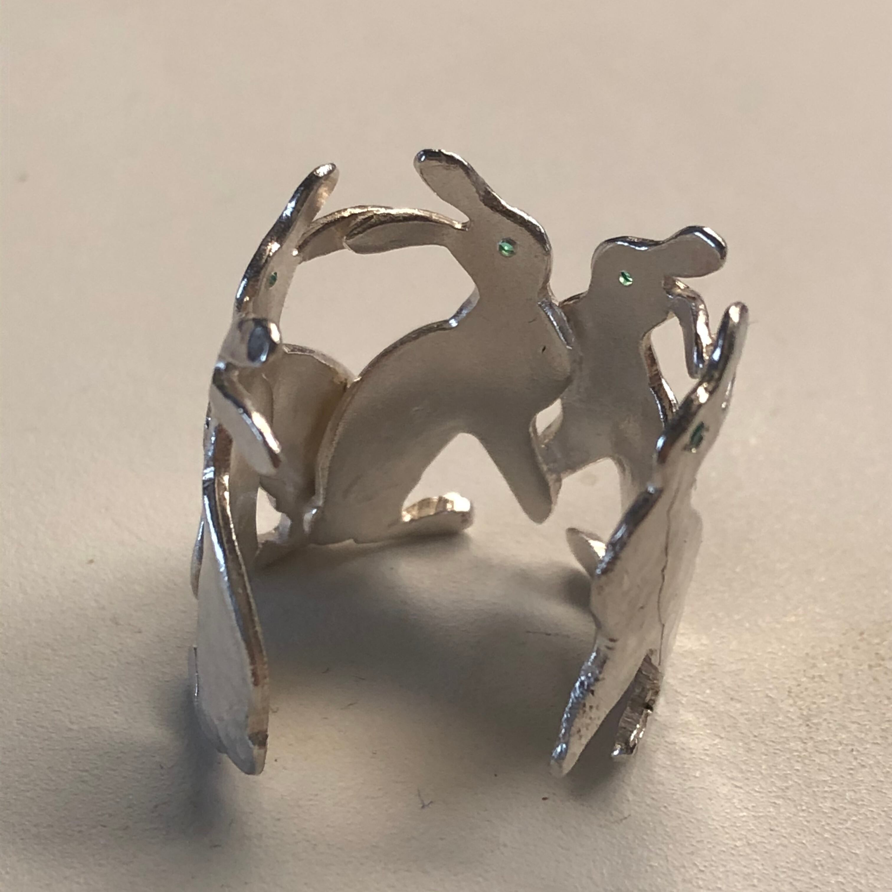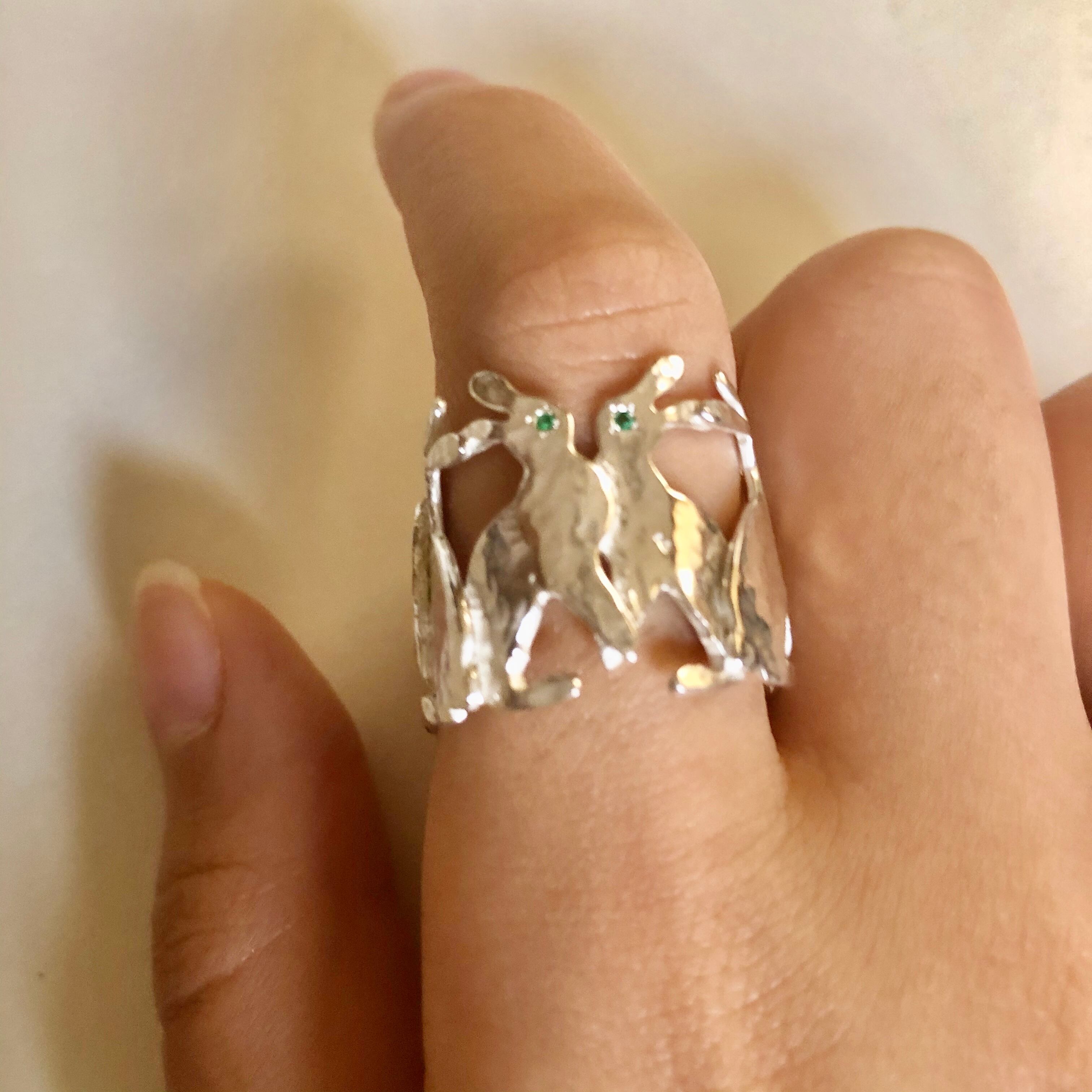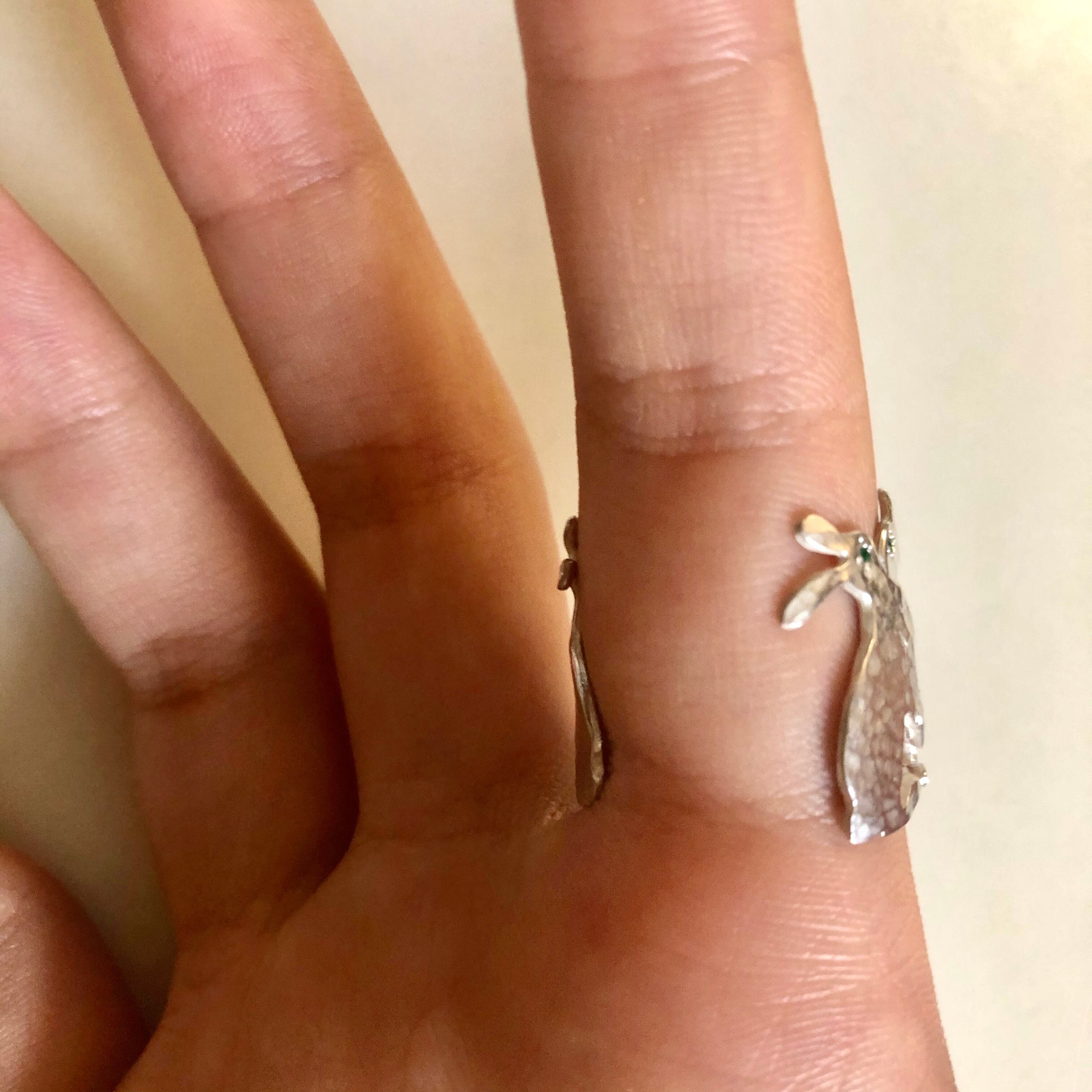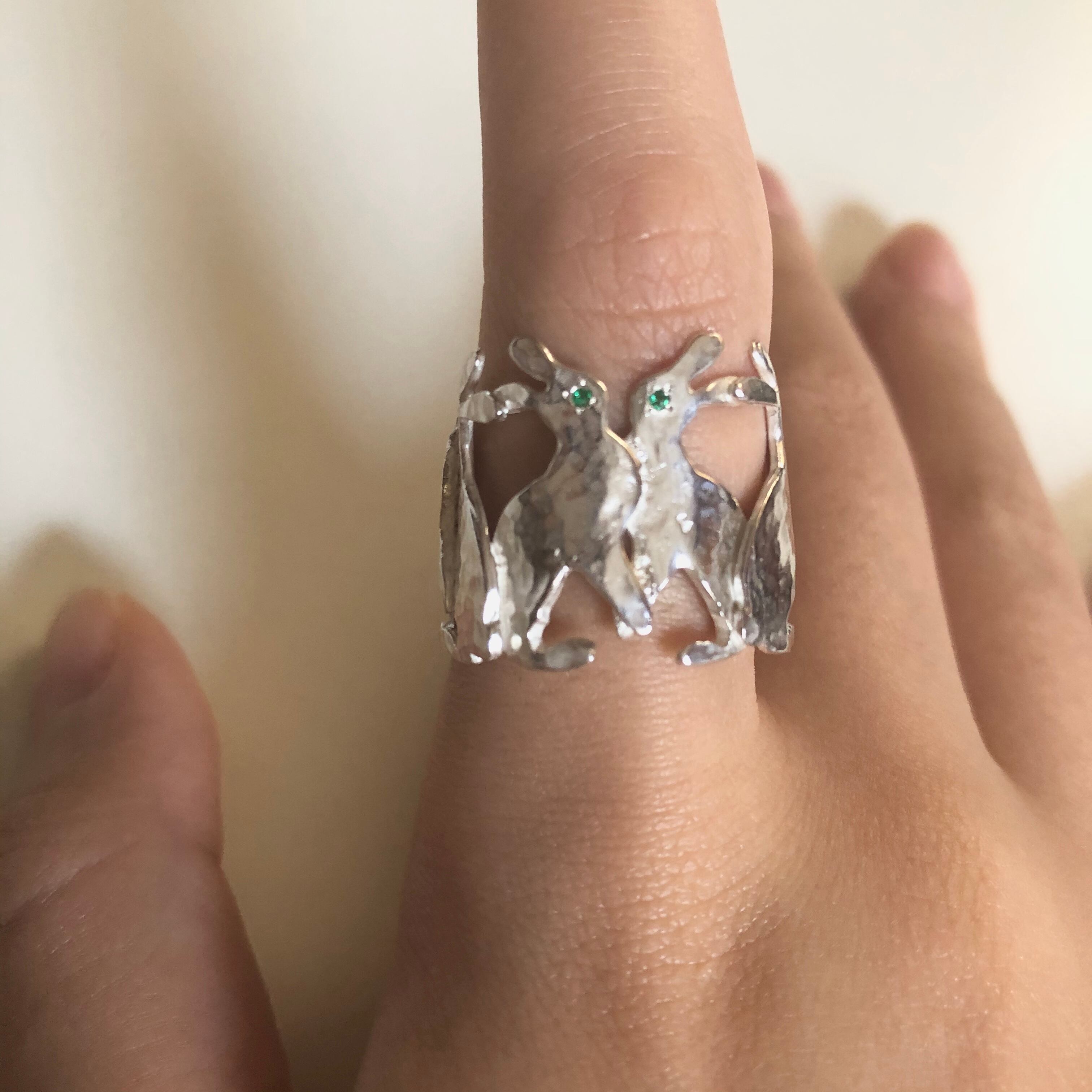 愛らしいうさぎのモチーフが、シルバーリングに華やかさを添えています。エ